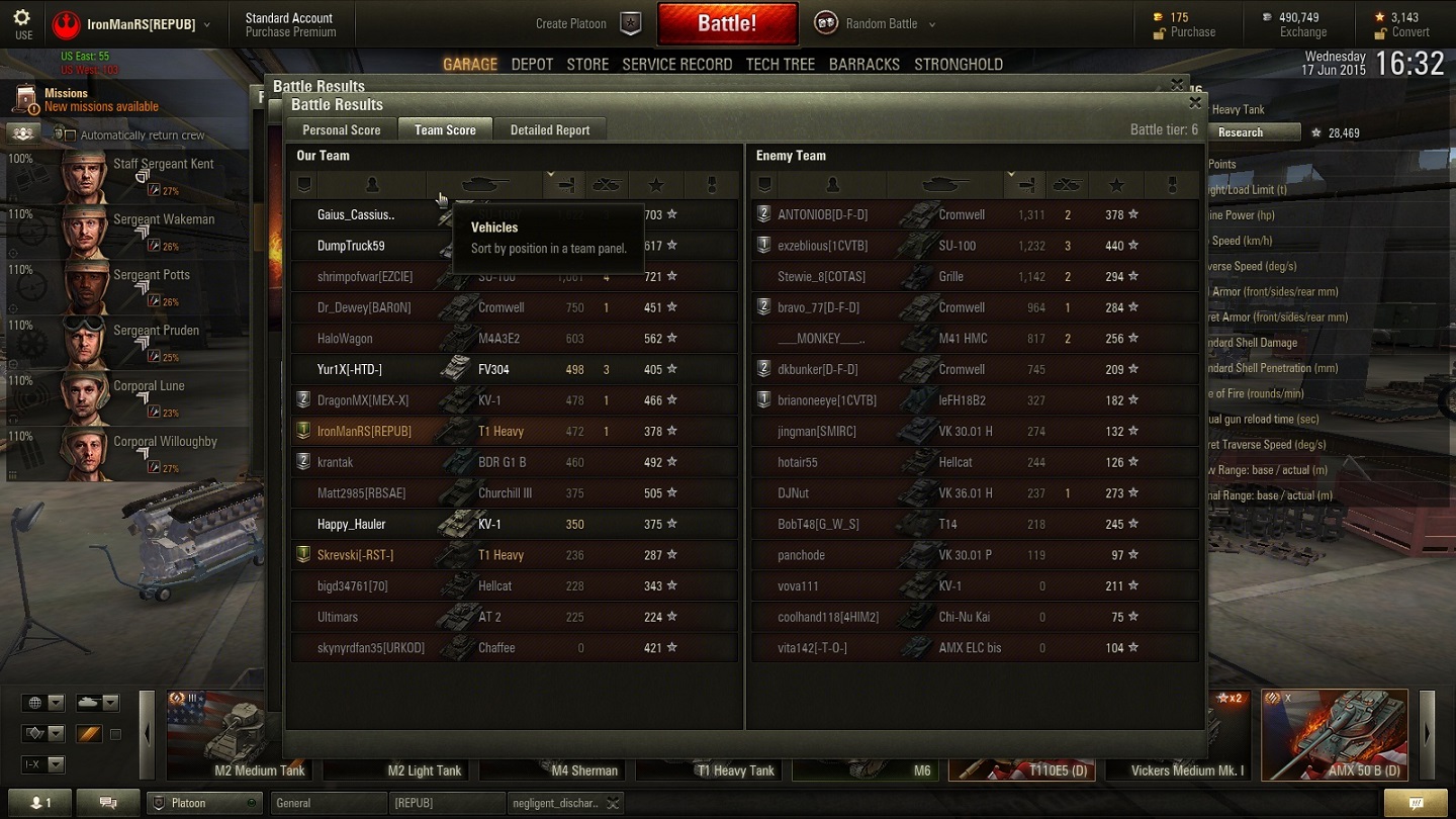 World of Tanks Match Statistics
