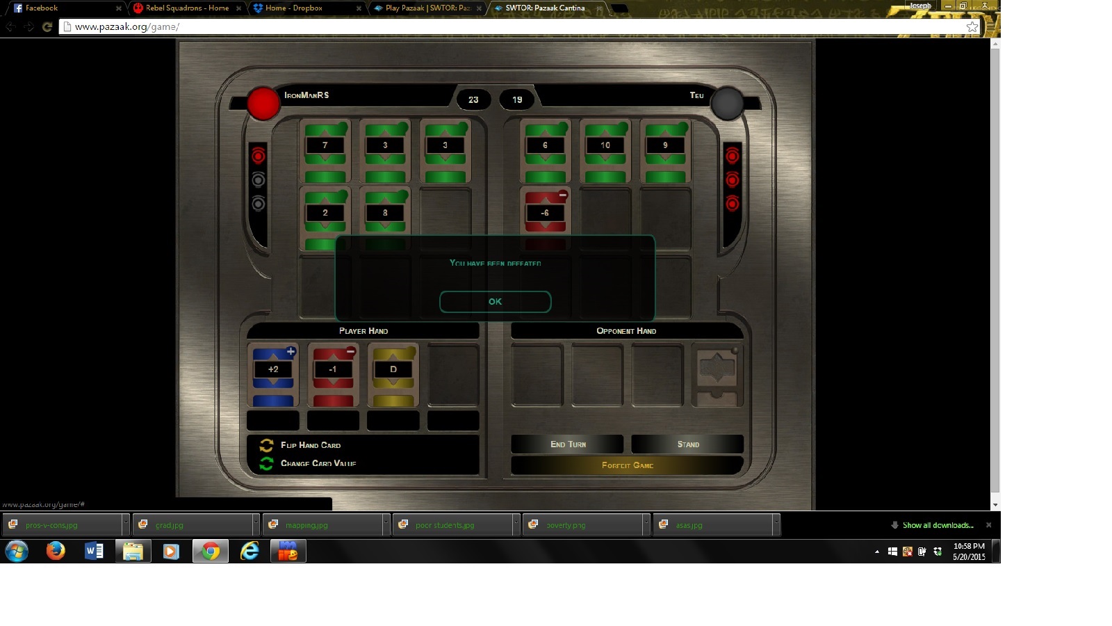 Pazaak Match Statistics