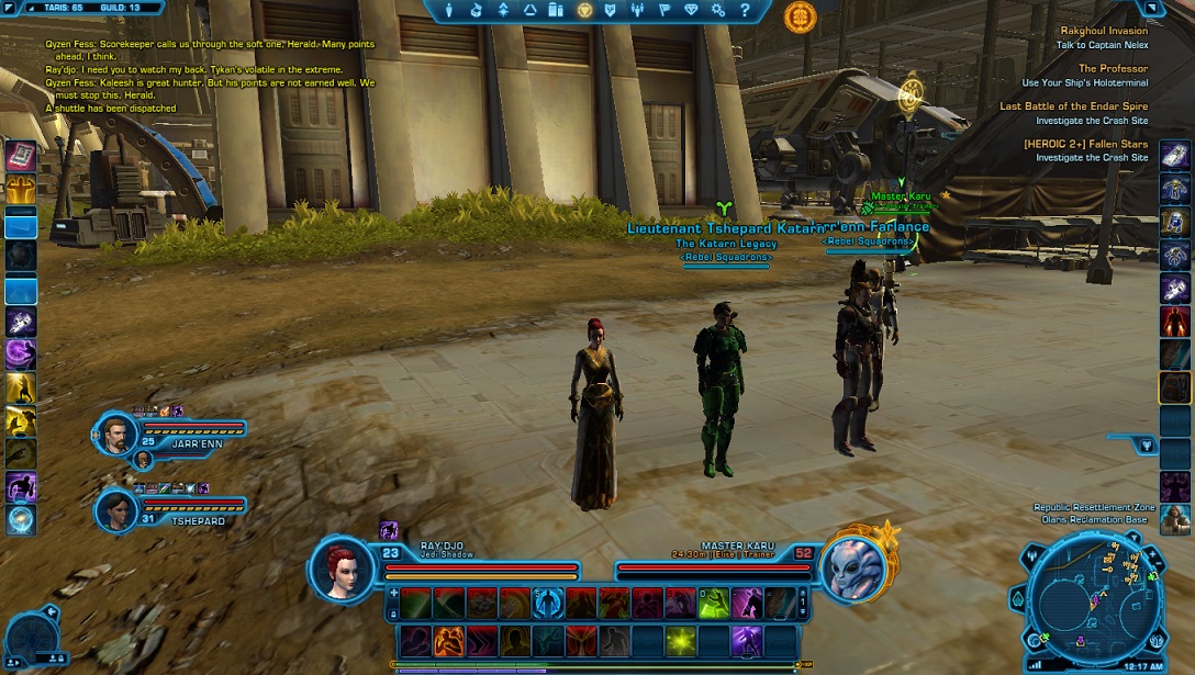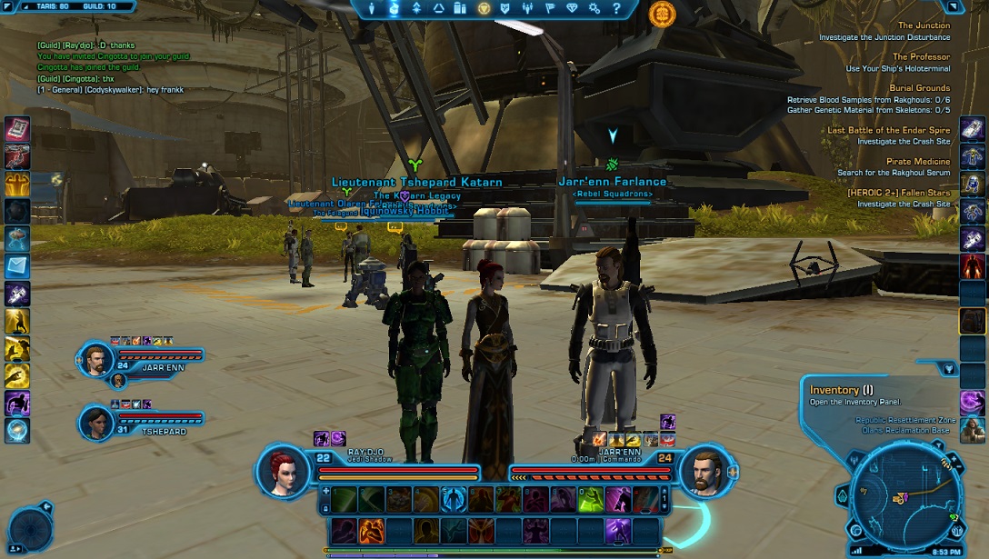 We ran Jaran's class quests: The Imperial Prescence and The Arrangement. Ray's class quest: the Junction.