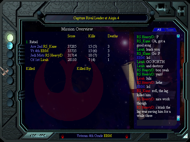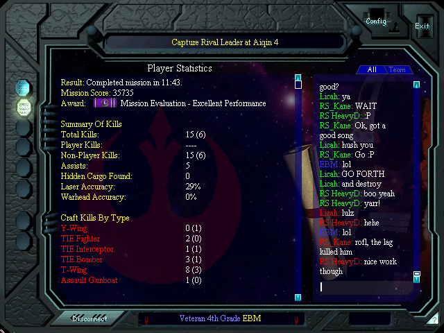 Victory, though costly. Licah was the last man standing with his entertaining evasion tactics in a B-Wing.