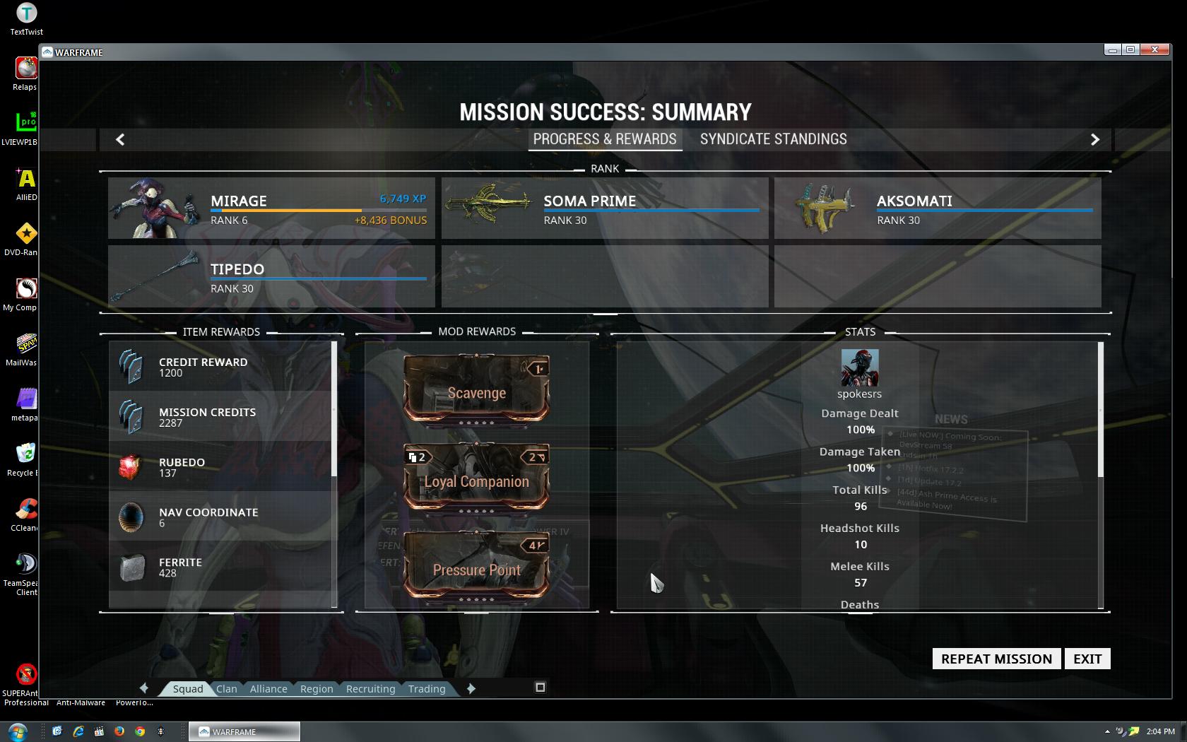 Warframe Match Statistics