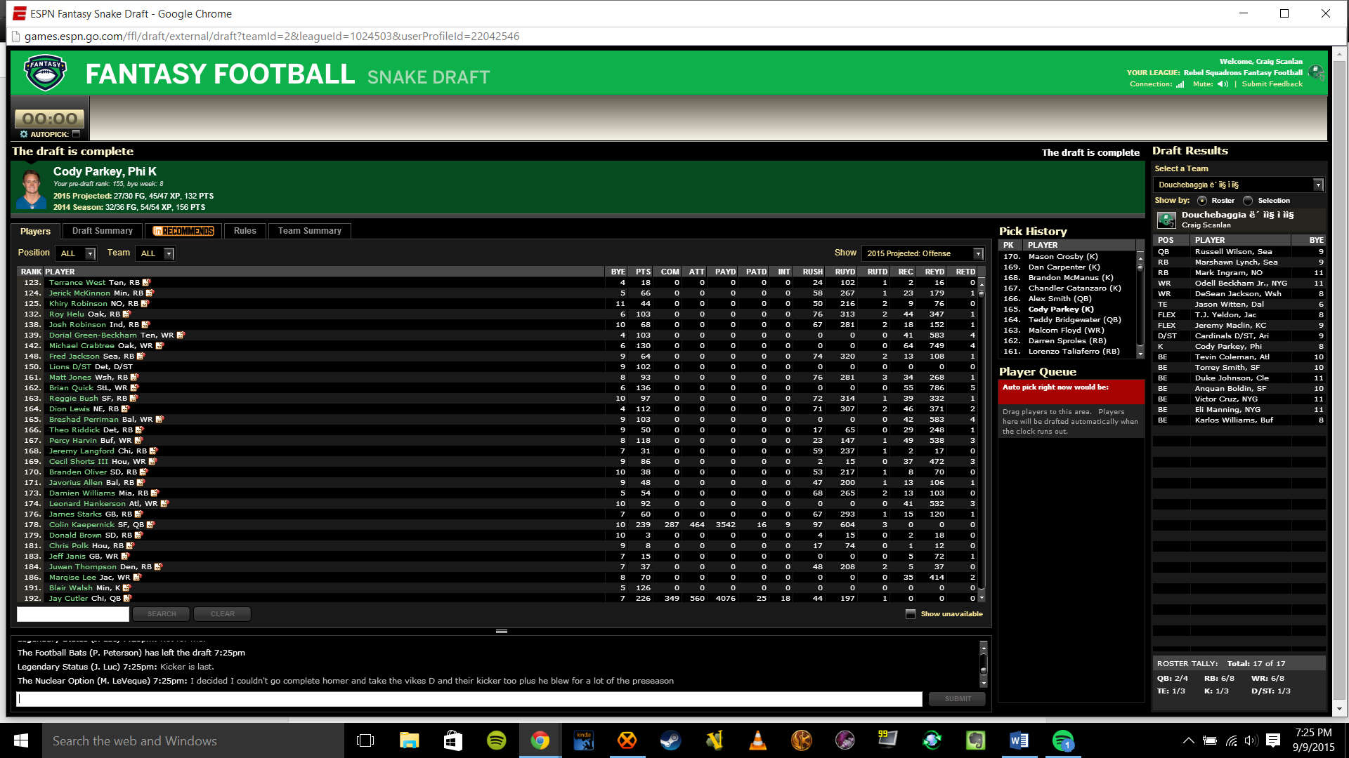 Non-Competitive other Match reported on 2015-09-09 22:36:56