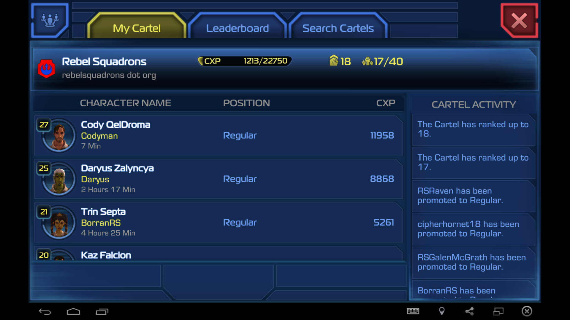 Playtime of about an hour, screenshot 31 indicates over level 10 and over 10,000 towards upgrading cartel (+2 so far for ITOD)
