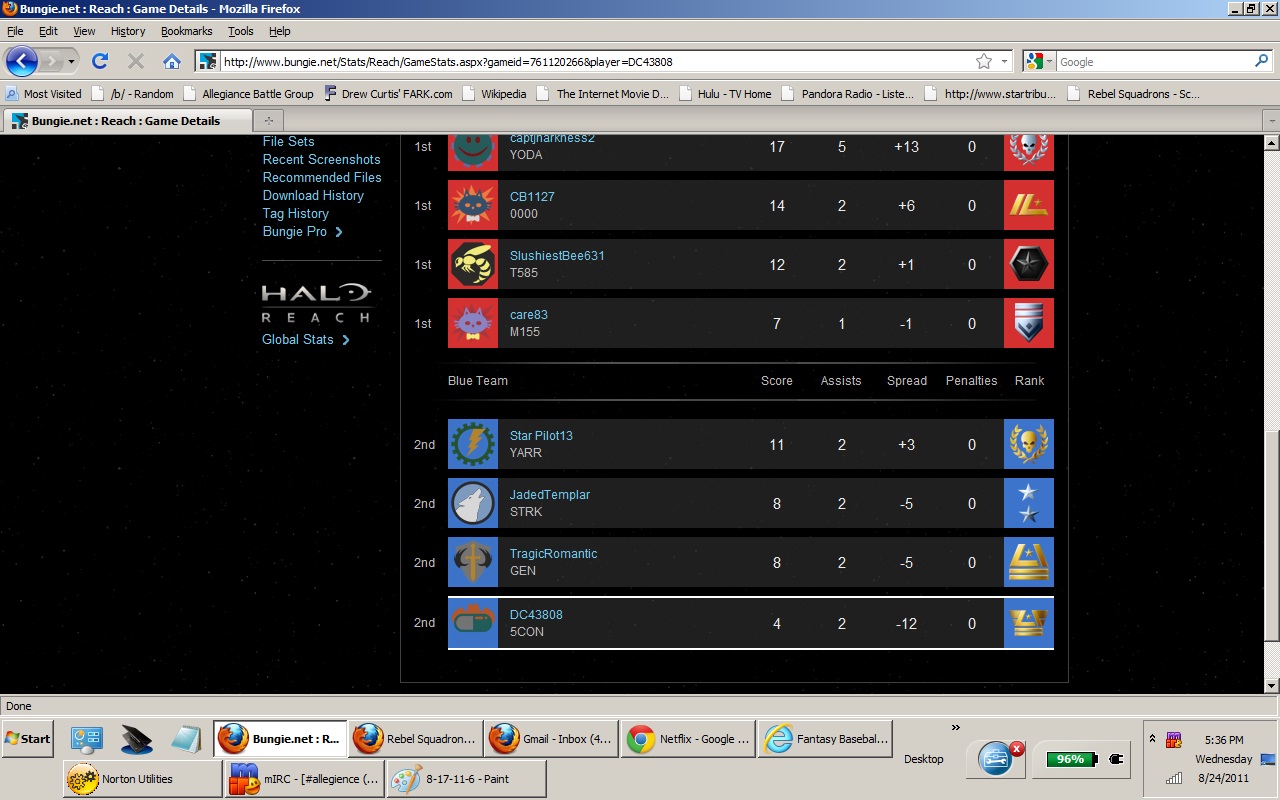 Non-Competitive XBox360 Match reported on 2011-08-24 18:37:46