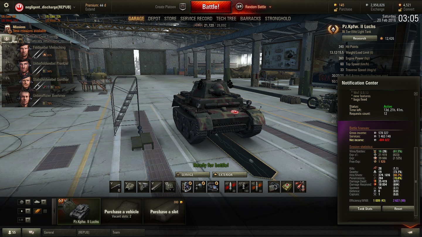 Non-Competitive tanks Match reported on 2016-02-20 09:07:26