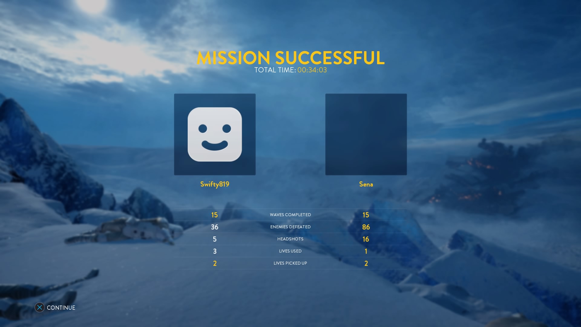 Coop survival on Hoth, PS4. For our second time in survival I like to think we did fairly well.