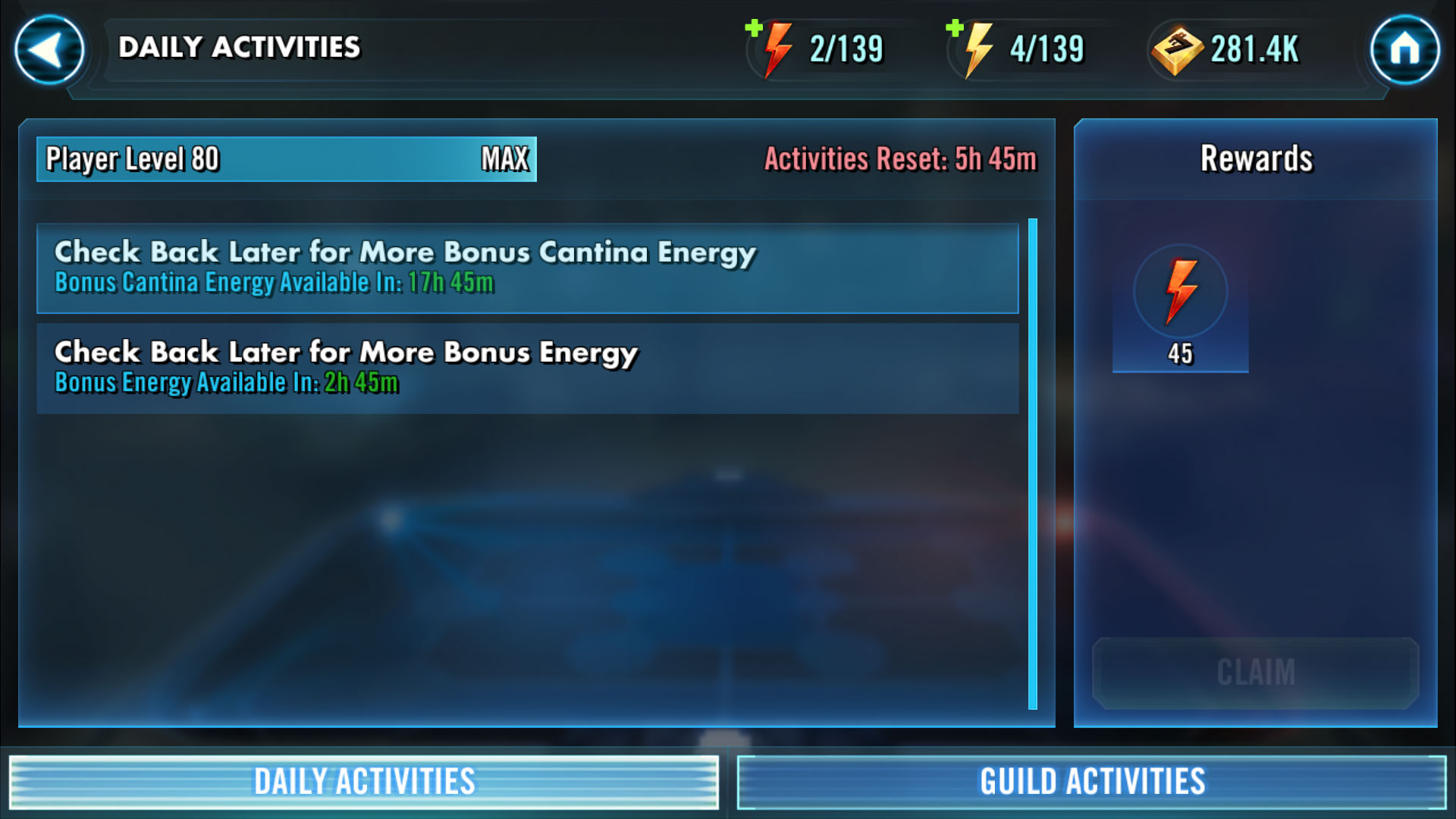 Forgot that the daily guild points resets at midday now, so my morning progress is gone. But the screenshot at least shows all my daily goals done, which takes at least 30 min to 1 hour, but I'll settle for the lowest points just to get on the board in the shittiest month of ever