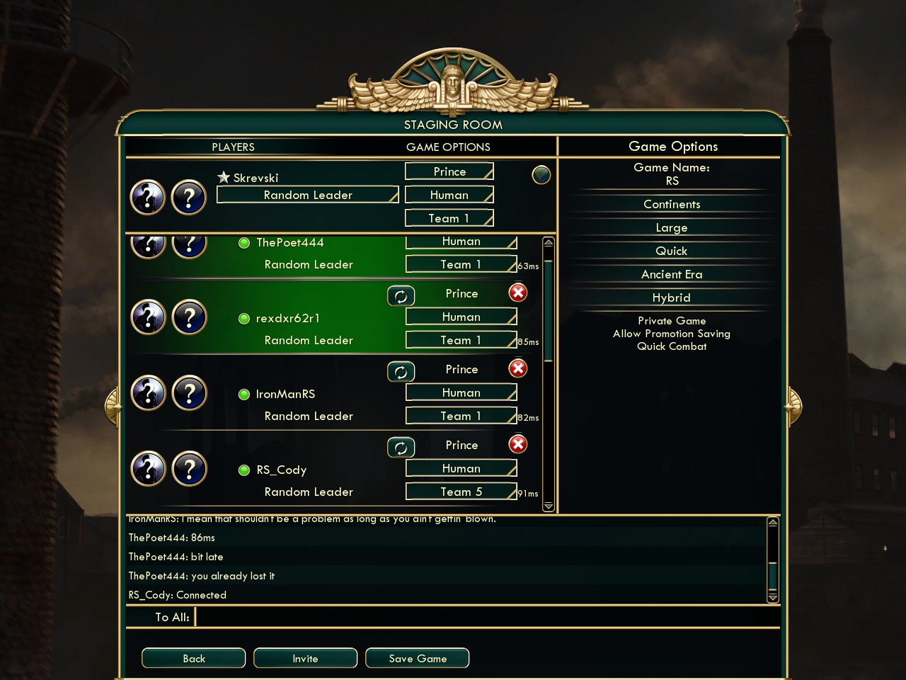 RS Multiplayer Hub > Non-competitive (Casual) Multiplayer Gaming > civ Match Listings