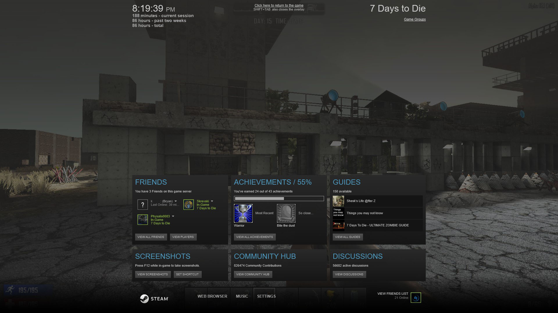 We survived the day 14 Blood Moon Horde in 7 Days to Die multiplayer. Don't have a starting time but the server settings are 4 hours for 1 in game day and we played the entirety of day 14 together.