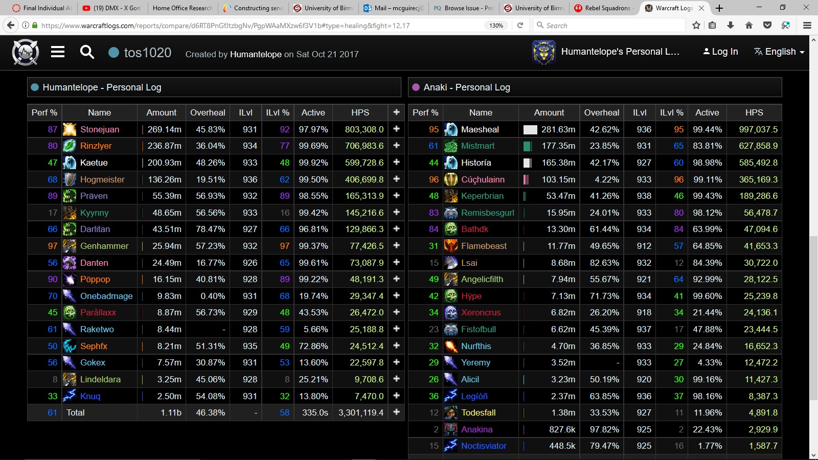 Non-Competitive other Match reported on 2017-10-21 16:11:10