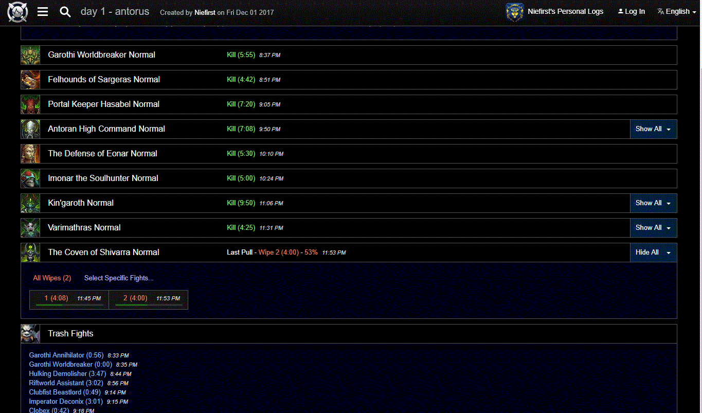 Non-Competitive WoW Match reported on 2017-12-02 08:58:58