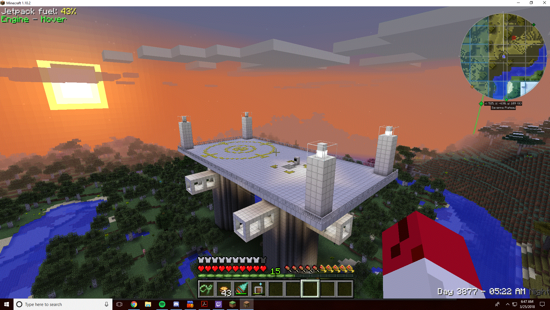 Teu and I built a structure, a landing pad, per original build instructions! It can be found at x:542, z:-604