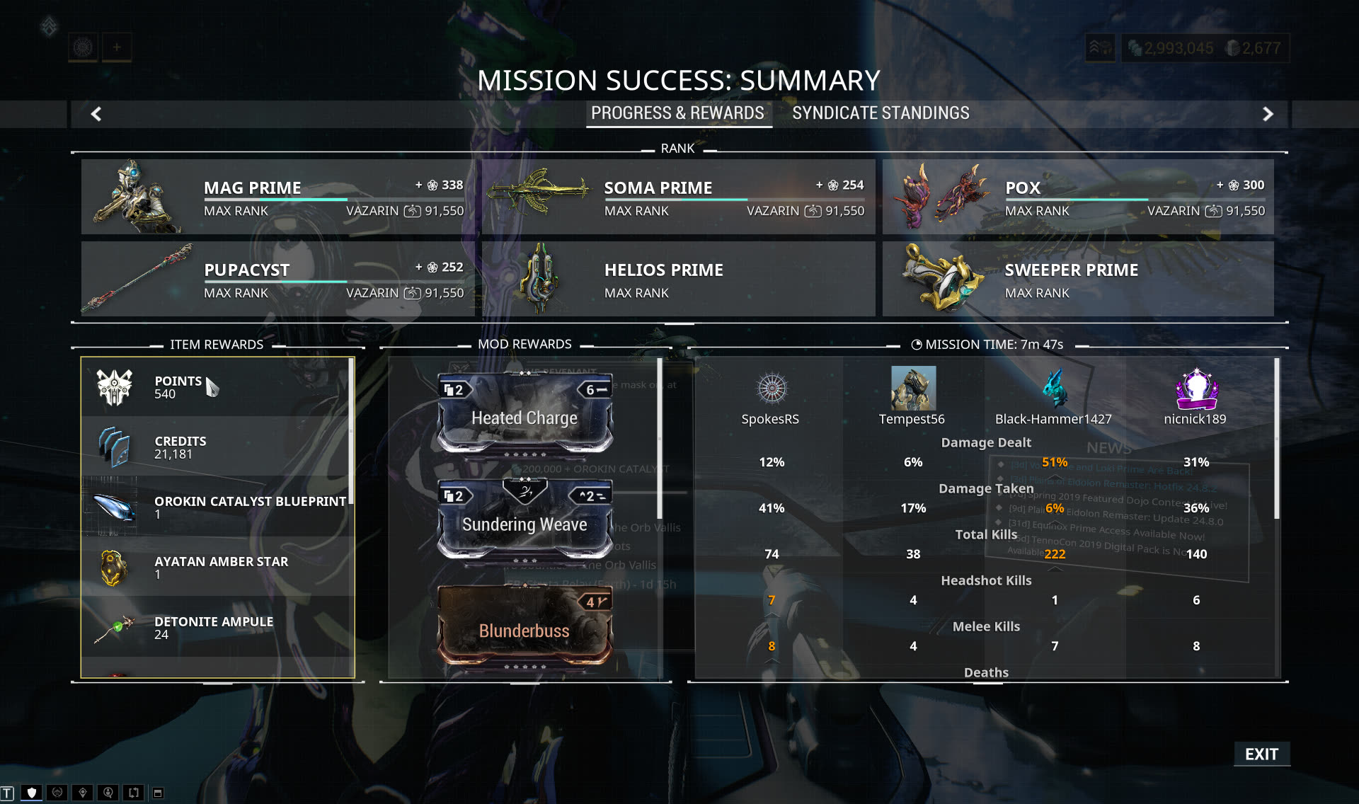 Warframe Match Statistics