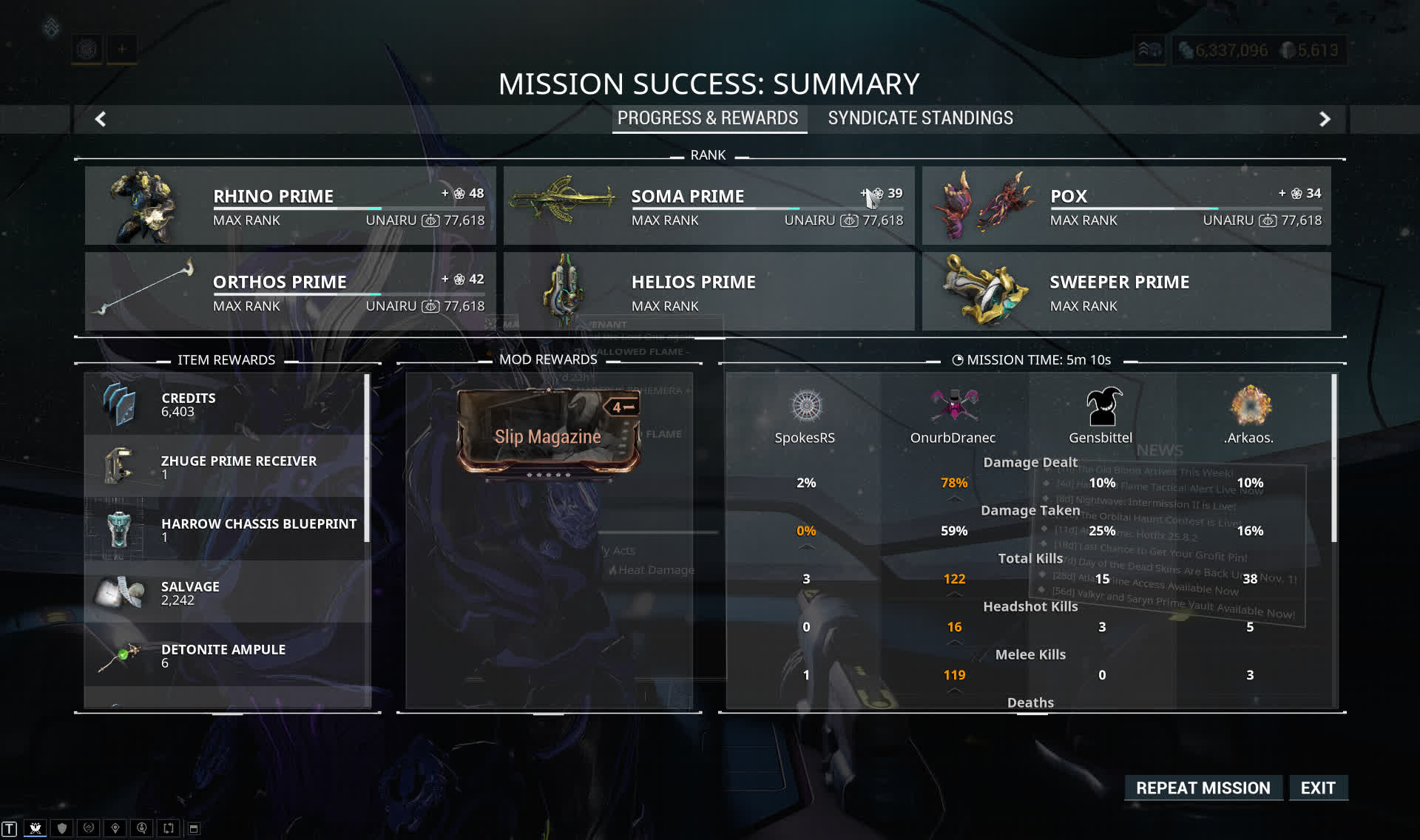 Warframe Match Statistics