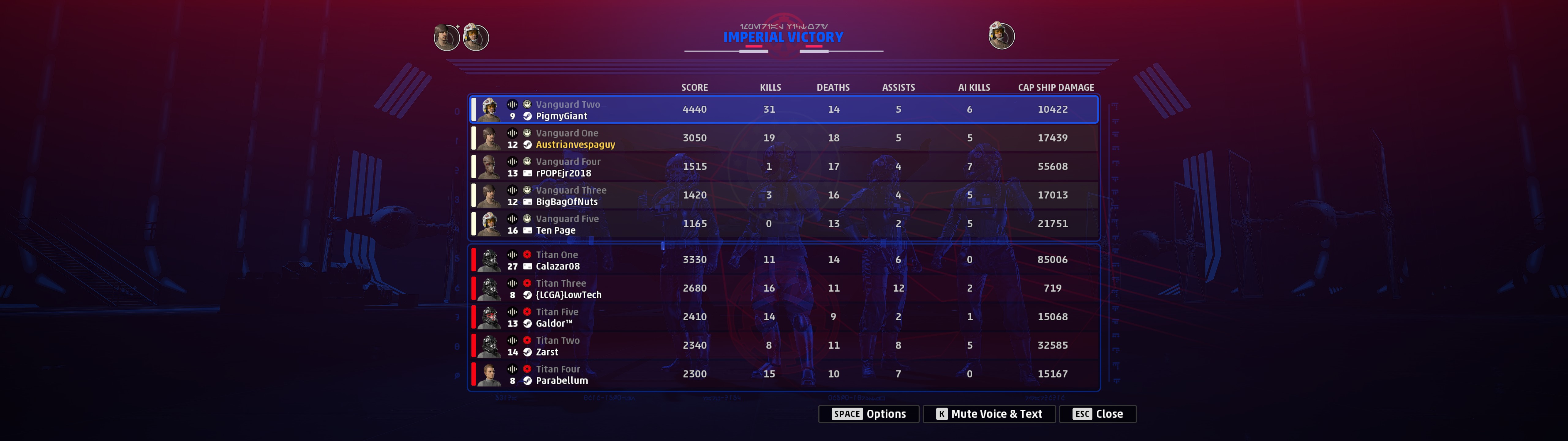 Star Wars Squadrons Match Statistics