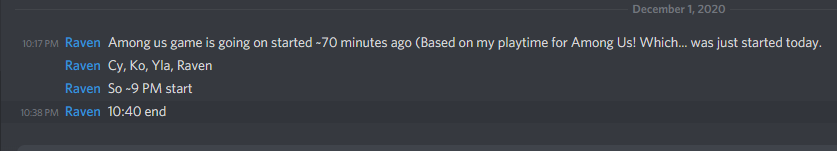 Non-Competitive other Match reported on 2020-12-01 22:41:05