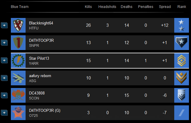 | ADM David "Heavy" Pasiechnyk (Star Pilot13) | 0 | 15 (0) | 14 |