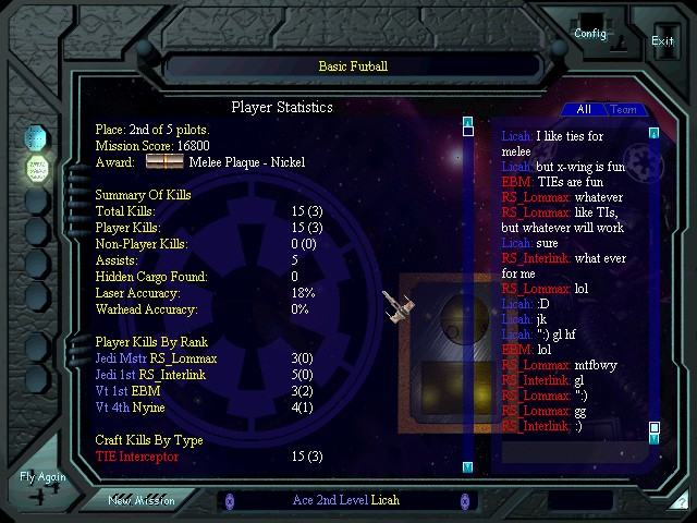 Five-way melee, very fun. InterlinkKnight ran away with the victory.