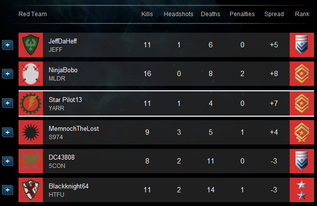 | ADM David "Heavy" Pasiechnyk (Star Pilot13) | 3 | 11 (0) | 4 |