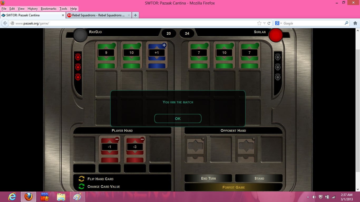 Extra Match Details: Pazaak Cantina
