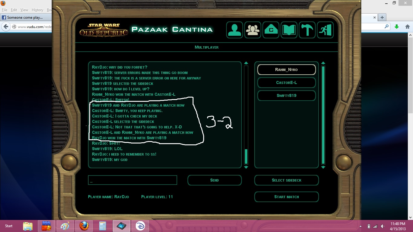 Extra Match Details: Pazaak Cantina