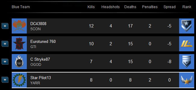 | ADM David "Heavy" Pasiechnyk (Star Pilot13) | 6 | 8 (0) | 2 |