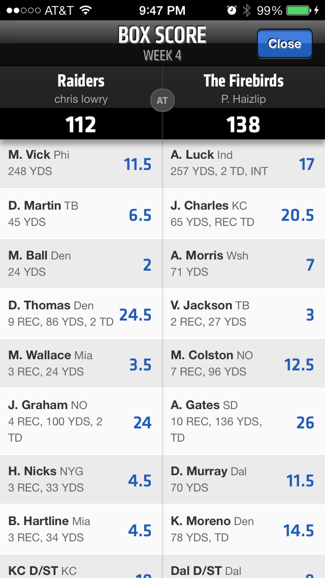 | VA Patrick Blastfire (The Firebirds) | 138 | 0 (0) | 0 |