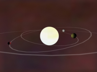 The most inward planet of the system, Tenchi is also one of the least attractive. Still in its formative stages, the planet is a mass of tempestuous activity. Hundreds of active volcanoes dot the landmasses, and the few water bodies on the planet remain at toasty temperatures just below evaporation year-round. Not even bacterium can live in these conditions.